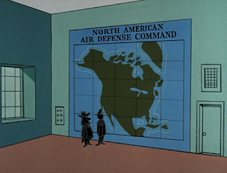 Panel 115 has the notation “Re-Do Dial.” And they did. The line in the cartoon is “The North American Air Defence Command protects the entire North American continent from air attack, Senator.” In the cartoon, the Senator also parrots words as if to show he understands what he’s being told. So we get “Oh, yes, protects,” “Um, um, ring” and so on.