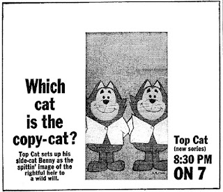 The success of The Flintstones in 1960 begat a number of other prime time cartoons the following season. All of them were single-season failures. One was Top Cat, which found life in reruns.