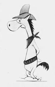 Quick Draw is not the brightest of cowboys, and seldom gets his man. However, he stopped trying to get his gun out of his holster, and looked down at his side-kick, Baba Looey.