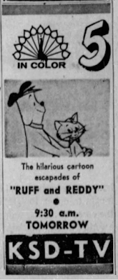 "Ruff and Reddy," a new cartoon program produced specifically for TV, has started on WFLA-TV (NBC) 10:30 a.m., Saturdays. The highlight of the half-hour snow is the "Ruff and Reddy" four-minute serial made in the cliff-hanger style. In the first 13 episodes (NBC will play two per program) the two heroes, cunning cat end a drowsy dog, are kidnapped by a flying saucer and taken to the planet of Muni-Mula (spell it backwards).